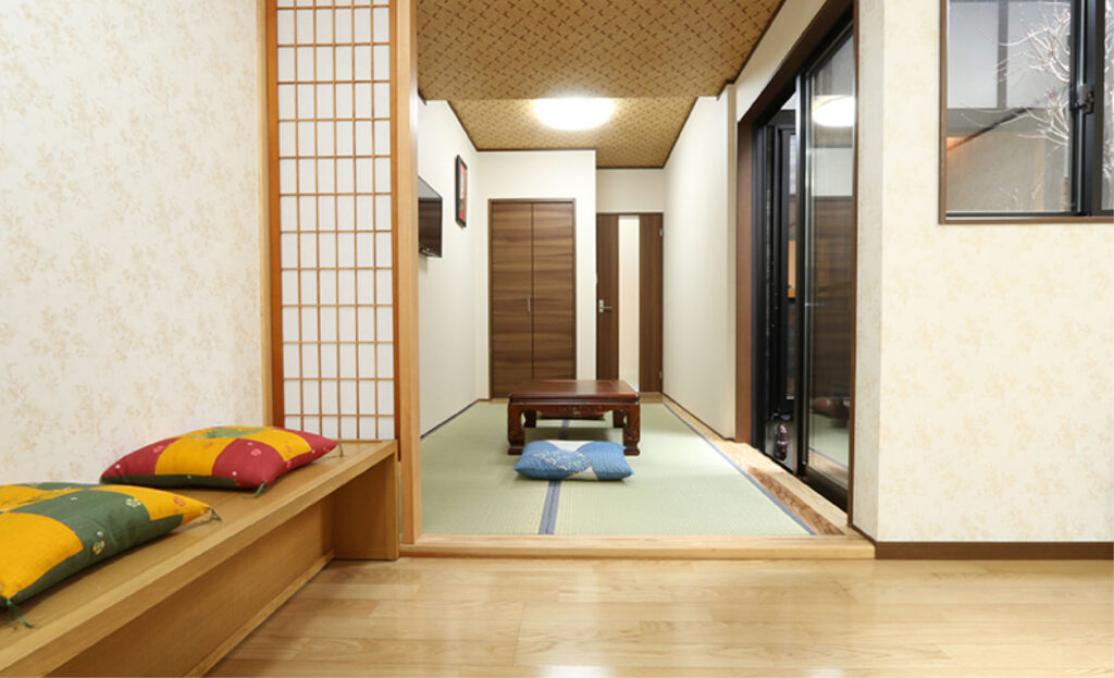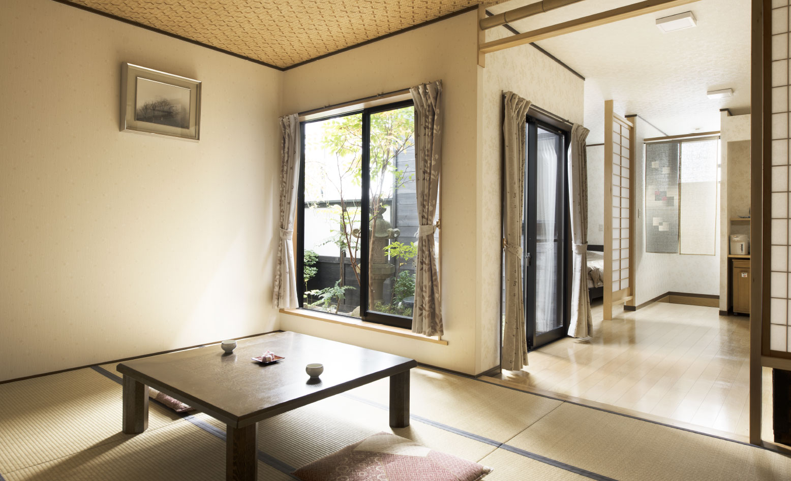 10 畳の和室や広々としたリビングルームを持つ独立した離れ家をご用意。