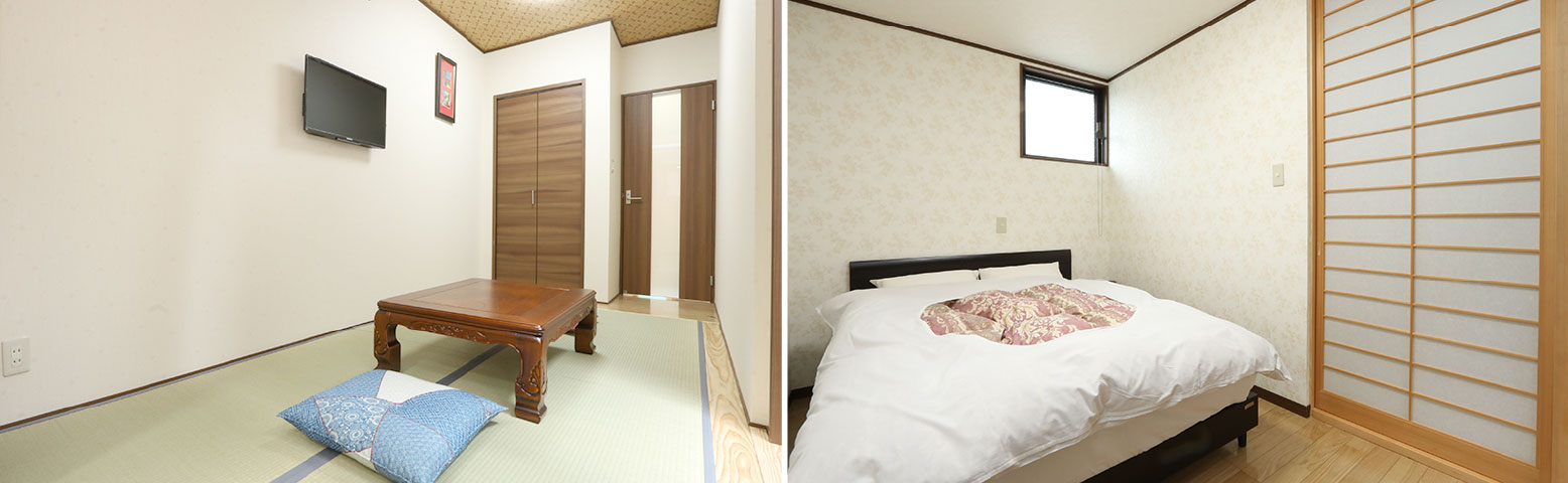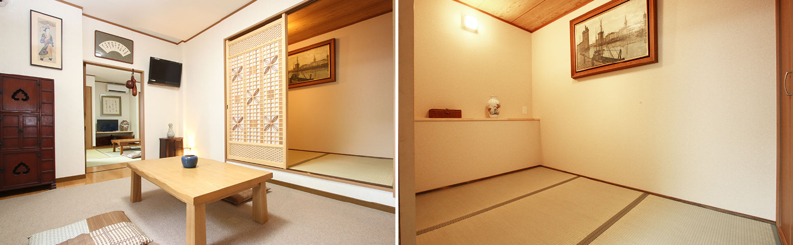 和室、ベットルーム、そしてコンパクトなリビングルームを備えた和モダン2 タイプと、
